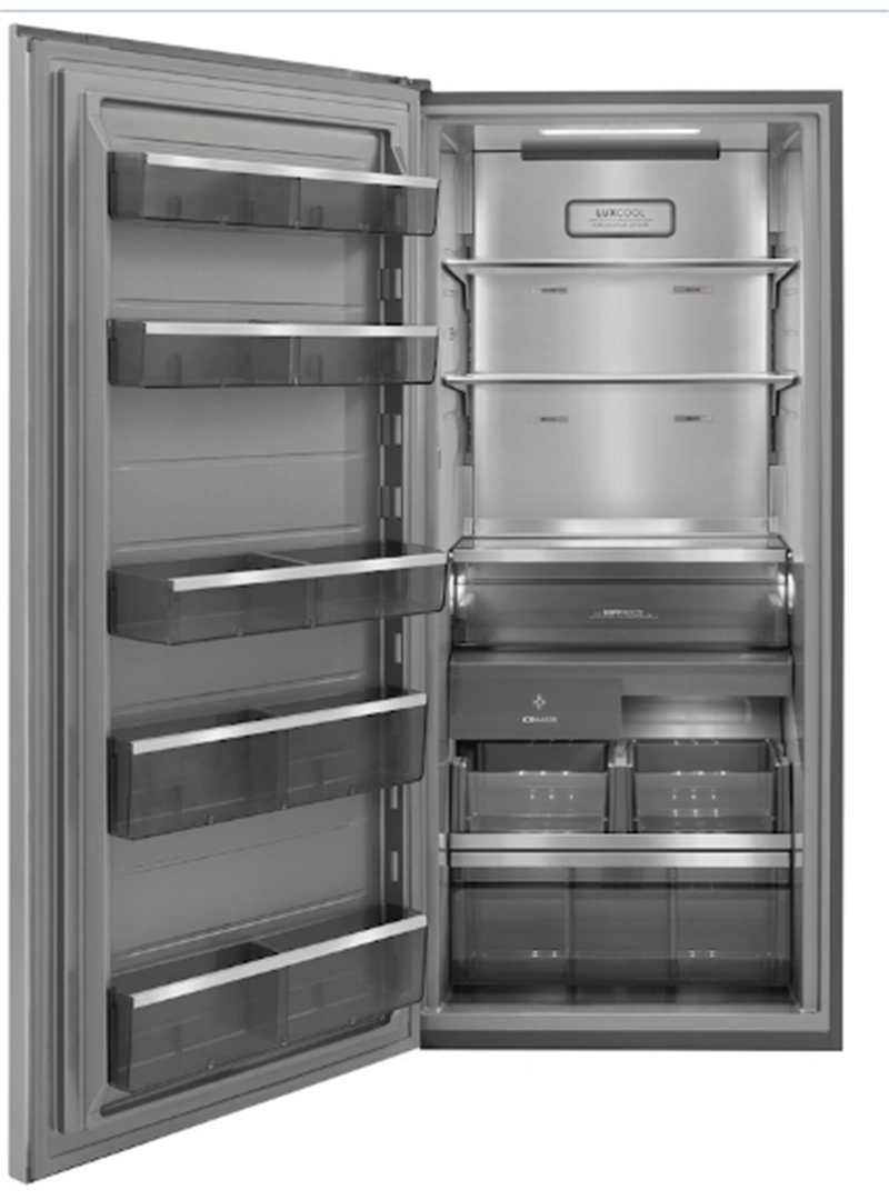 - The elegant design of this Single Door Freezer elevates the occasion every time the door opens with gray bins and liner and premium LED lighting