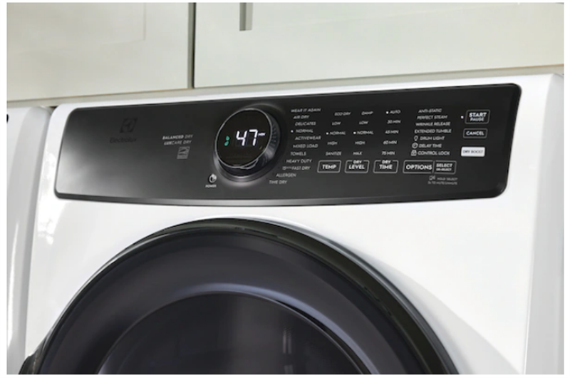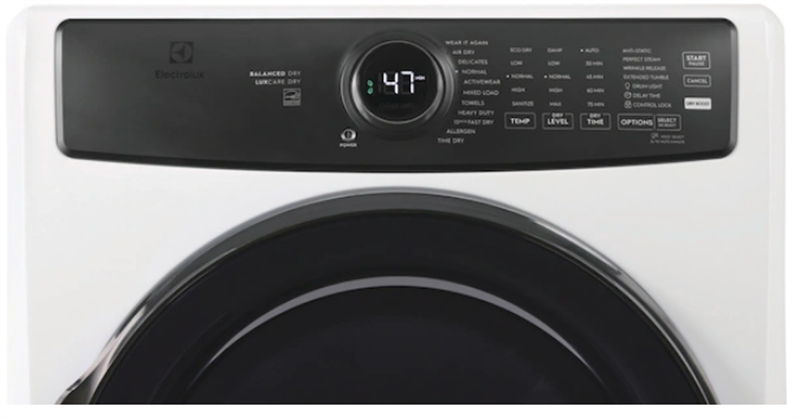 8.0 cu. ft. Capacity: Large capacity to handle big laundry loads, providing efficient drying for your family’s needs.Perfect Steam™: Reduces wrinkles and refreshes clothes, making ironing easier and clothes smell fresher.LuxCare® Dry: Delivers consistent and precise drying, protecting fabrics and ensuring optimal results for each load.Instant Refresh: Revives clothes in just minutes, removing wrinkles and odors without the need for a full drying cycle.200 CFM Airflow: Strong airflow ensures quick and efficient drying, even for bulky items.Lint Filter: Traps lint and debris, ensuring clean, fresh clothes with every load.Anti Static: Reduces static cling, providing a smoother, fresher finish to your laundry.Delay Start: Set the dryer to begin its cycle at a convenient time, offering flexibility for your schedule.Control Lock: Prevents accidental settings changes during operation, offering peace of mind.ENERGY STAR Certified: Energy-efficient design that helps reduce energy consumption and lower utility bills.