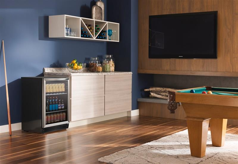 - Enjoy the sleek and contemporary design of this elegant beverage center.