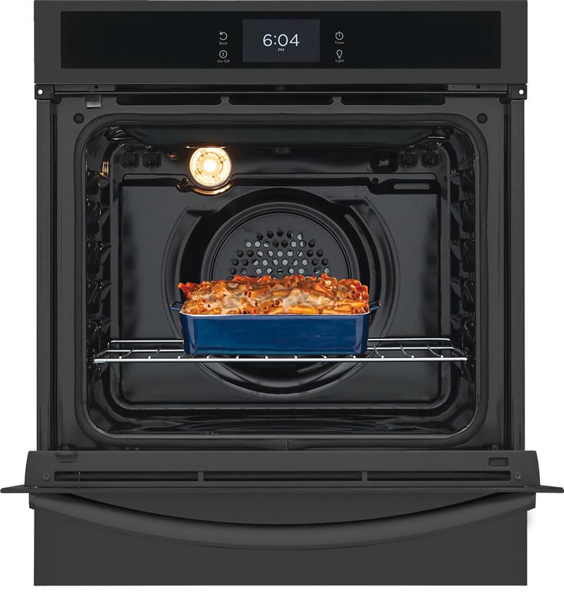 Size and Capacity: 24 Inch Single Electric Wall Oven with 2.8 cu. ft. oven capacity.True Convection Oven: Ensures even heat distribution for perfectly cooked meals every time.Air Fry Function: Enjoy crispy and healthier meals with little to no oil.Quick Preheat: Rapidly heats the oven, saving you time during meal prep.Self and Steam Clean Options: Choose between self-cleaning and steam-cleaning modes for easy maintenance.Storage Compartment: Convenient storage space to keep kitchen essentials organized and easily accessible.ADA Compliant: Designed to be accessible for all, meeting the standards set by the Americans with Disabilities Act.Star-K® Certified: Meets the strict kosher certification standards for those who follow kosher cooking practices.Finish: Sleek Black design that complements a variety of kitchen aesthetics.