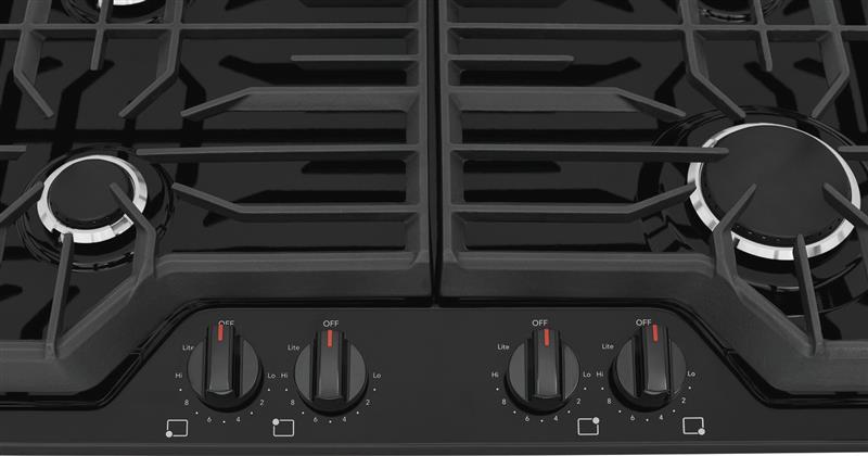 • Moving heavy pots and pans across the cooktop is easier with continuous edge-to-edge grates.