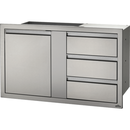 Creating your own custom grill island has never been easier with Napoleon's Built-In Components. Every great outdoor kitchen needs storage; this 42'' x 24'' built-in component has everything you need for storage. Featuring three drawers and a single large door for storage. The stainless steel construction, soft closing hardware, seamless trim, and anodized aluminum handles provide durability and endless installation possibilities.