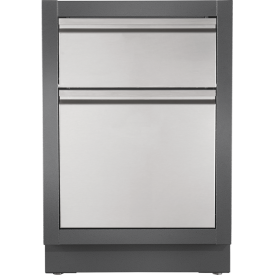 Things can get messy even in the perfect kitchen. Make cleaning up your outdoor kitchen OASIS easy with the OASIS Waste Drawer Cabinet. Featuring a garbage pull out with a removable waste bin, and a flip down drawer with paper towel holder. This Carbon colored, powder coated, galvanneal cabinet features increased durability from the two-coat pebbling, finishing system and stainless steel door and drawer front. Installation is a breeze with knockouts for gas and electrical. Levelling feet ensure a balanced surface, even if your patio isn't perfectly level. Add this cabinet to the perfect outdoor kitchen OASIS , along with your choice of grill head and under grill cabinet. *Countertop not included.