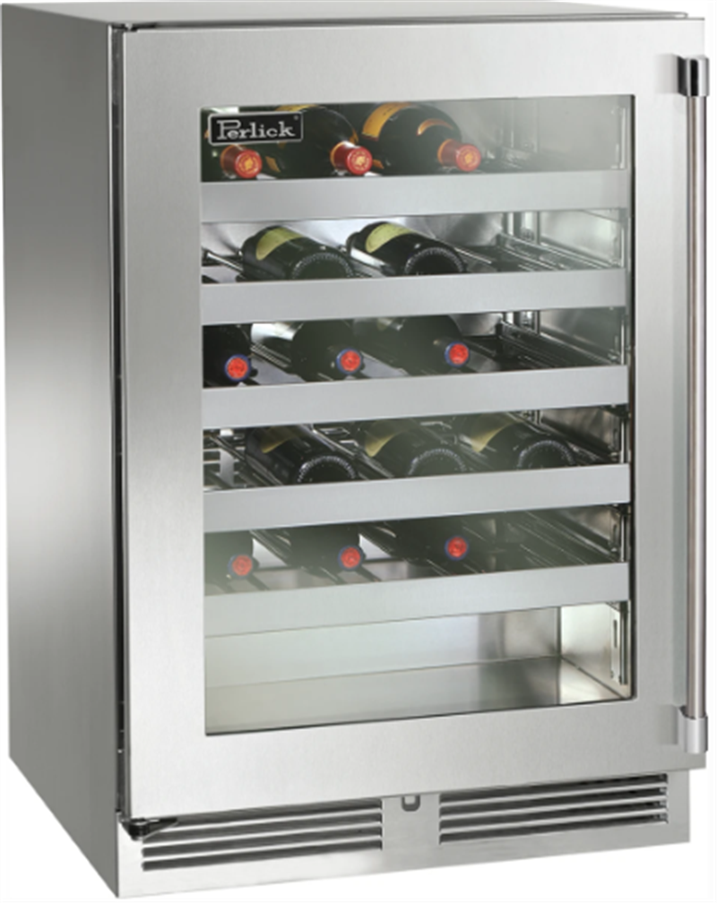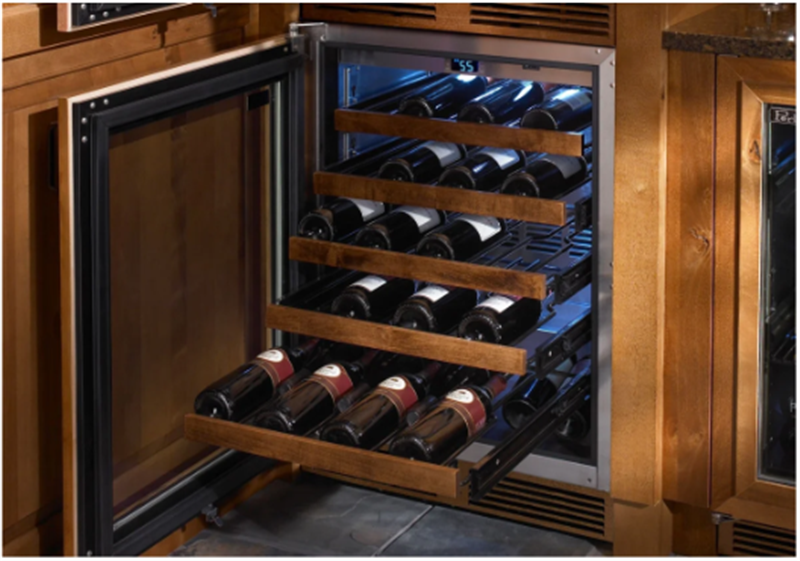 - Wine shelves fully extend on vibration dampened, stainless steel ball-bearing glides; stainless steel wine shelves will not absorb odors over time