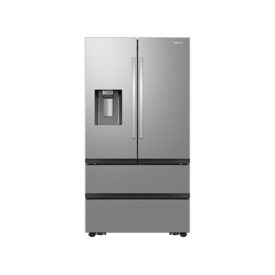 The 36-inch Smart 4-Door French Door Refrigerator with a 30 cu. ft. total capacity offers spacious storage for fresh food, beverages, and frozen items, making it perfect for large families or frequent entertainers. It features a Slide-in Shelf for customizable storage, allowing you to easily fit larger items and keep your refrigerator organized.