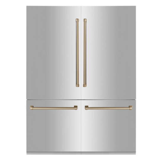 The ZLINE 60'' Autograph Edition 32.2 cu. ft. Built-in 4-Door French Door Refrigerator combines style, functionality, and advanced technology to enhance your kitchen.