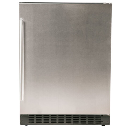 The 24-inch compact refrigerator features blue LED lighting for a modern look and enhanced visibility. It offers a 5.1 cu. ft. capacity, providing ample space for your storage needs.