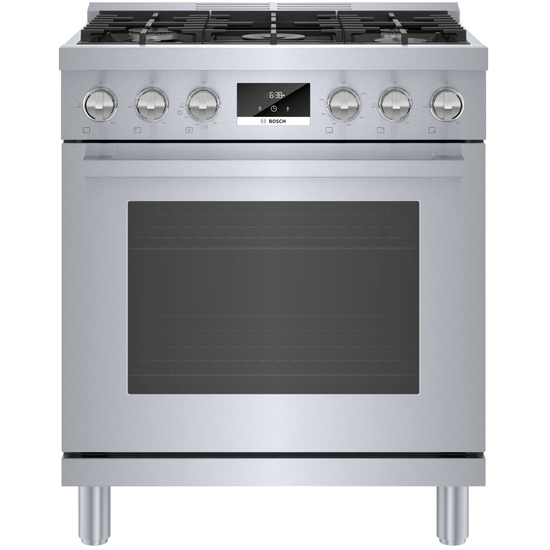 30-inch freestanding dual fuel range combining the precision of gas cooking with the even heat of an electric ovenFive sealed burners for efficient cooking and easy cleanupContinuous grates allow for smooth movement of cookware across the cooktop3.9 cu. ft. oven capacity with Genuine European Convection for even baking and roastingSelf-cleaning function for hassle-free maintenanceSleek design that complements any kitchen décorIdeal for home chefs looking for high performance and ease of use