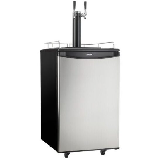 The 21-inch Freestanding Kegerator features dual taps, allowing you to serve two different beverages at once.Offers a spacious 5.4 cu. ft. capacity, able to hold multiple kegs for larger gatherings or events.Includes a drip tray to catch any spills, ensuring a clean and convenient serving experience.Equipped with swivel castors for easy mobility, allowing you to move the kegerator effortlessly.The chrome guard rail helps keep glasses securely in place while serving drinks.Features an automatic defrost function to prevent ice buildup and maintain consistent cooling.Comes with mechanical temperature control, allowing you to adjust the cooling to your ideal beer-serving temperature.Designed as a freestanding unit, combining functionality with a sleek, modern appearance for any setting.