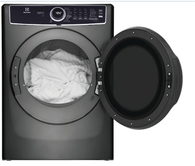 Size: 27-Inch Electric Dryer designed for efficient drying with ample space.Capacity: Offers 8.0 cu. ft. of space, perfect for large loads of laundry.LuxCareâ„¢ Dry System: Uses advanced drying technology to ensure optimal drying results for all fabric types.Predictive Dryâ„¢: Senses moisture levels and predicts drying time for accurate, efficient drying.Perfect Steamâ„¢: Gently uses steam to reduce wrinkles and refresh clothes.Instant Refresh: Quickly refreshes clothes, removing odors and wrinkles in just a short cycle.Dryer Programs: Features 11 different drying programs to accommodate various fabric needs and preferences.15-Minute Fast Dry: Provides a quick drying option for small loads or items in a hurry.Eco-Friendly Normal Cycle: Designed to provide efficient drying while conserving energy.ENERGY STAR Certified: Certified for energy efficiency, helping to reduce power consumption and lower utility bills.