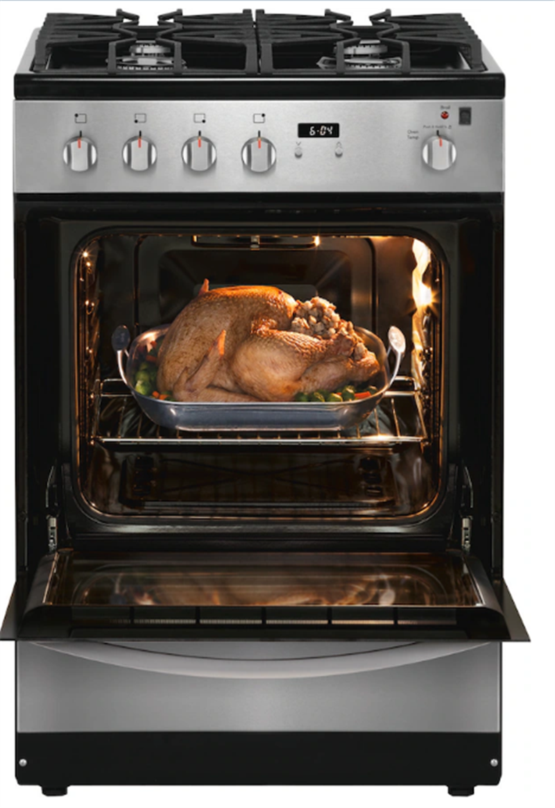 - This 24" gas range is compact in design, but not in capacity - oven fits up to a 10 lb. turkey.