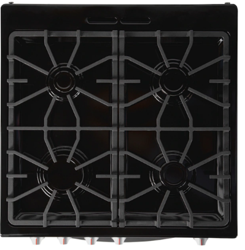 - Continuous grates make it easy to move heavy pots and pans between burners without lifting.