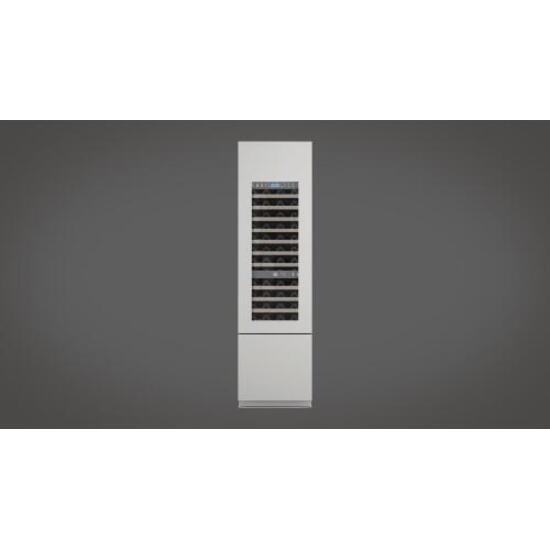 24 Inch Dual Zone Wine Cellar with a 54-bottle capacity, perfect for wine enthusiasts seeking optimal storage for a variety of winesNatural beechwood shelves, offering durability and an elegant aesthetic for wine bottle organizationCave storage compartment for additional wine storage flexibilityTriZone bottom drawer, providing three separate temperature zones for different types of winesLED lighting that illuminates the interior, allowing for easy visibility without impacting the wine's qualityTriplePlay refrigeration system for efficient and consistent coolingTriple Panel door for enhanced insulation and energy efficiencyUV-resistant glass door, protecting wines from harmful ultraviolet raysAnti-vibration system designed to minimize disturbances, preserving the quality and aging process of wineSabbath Mode for ease of use during specific religious observancesWhite aluminium interior that complements modern designs and ensures a sleek, clean lookOverlay right hinge for a seamless built-in installation that integrates beautifully into any kitchen or wine storage area