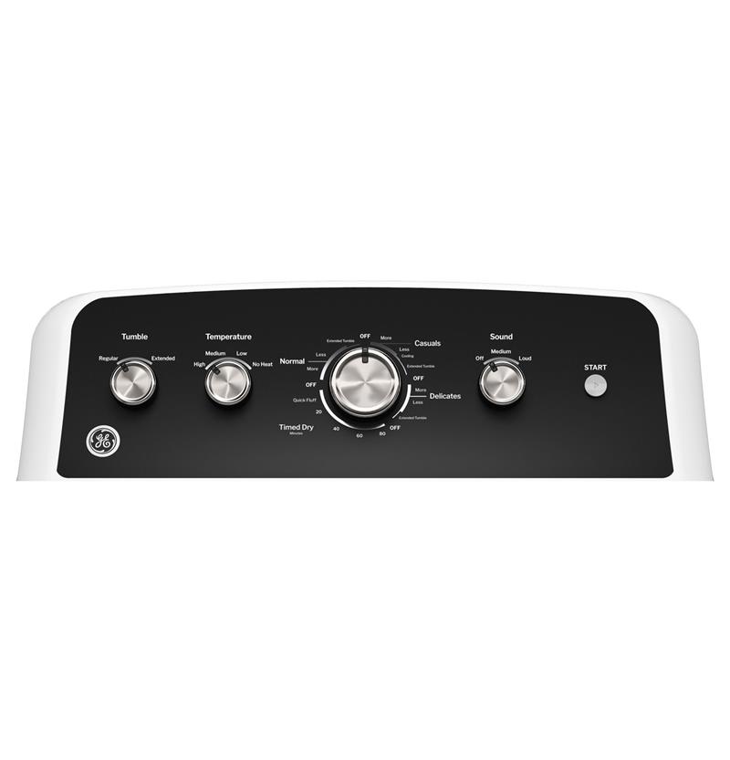The GE 7.2 cu. ft. Capacity Electric Dryer offers ample space for drying large laundry loads. It features up to 120 ft. of venting capacity, providing flexibility for installation in various spaces.