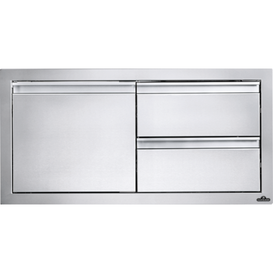 Creating your own custom grill island has never been easier with Napoleon's Built-In Components. Every great outdoor kitchen needs storage; this 36'' x 16'' built-in component has everything you need for storage. Featuring two generous drawers and a single large door for storage. The stainless steel construction, soft closing hardware, seamless trim, and anodized aluminum handles provide durability and endless installation possibilities.