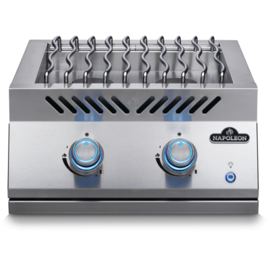 Create sides and sauces while the main grill is in use with this 18-inch, drop-in, Dual Range Burner that provides loads of extra space. Instantly ignite these burners single-handed with the JETFIRE Ignition System. The large, ergonomic NIGHTLIGHT Control Knobs provide ambiance and safety, glowing a glorious blue that changes to red when the burners are in use. Made from the same quality of marine-grade stainless steel as the 700 Series built-in grills, this drop-in side burner matches your custom outdoor kitchen. These burners provide stylish longevity and were built for ease of install.
