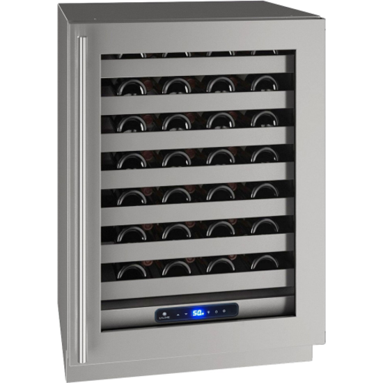 Wine lovers rejoice! U-Lines 24-inch Wine Refrigerator allows you to store up to 49 of your favorite white and red wines at their ideal temperatures. Our single zone wine cooler keeps your wine collection at it's optimal temperatures and quickly cools new wines to maintain freshness. U-Lines 19-position U-Adjust interior, full-depth lower interior, and six full-extension removable shelves provide easy and customizable organization. An industry-leading variable speed compressor delivers ultimate energy efficiency while maintaining a quiet operation. Adjustable blue and white LED lighting, and stainless steel interior accents provide this unit with a premium finish. This beverage center can be built into kitchen cabinetry or used freestanding.