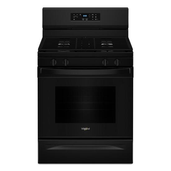 Make the most of your time in the kitchen with the Whirlpool 30 inch gas range, a self cleaning oven featuring high heat burners and No Preheat Mode. This 5.0 cu ft gas oven with Broil helps you add a toasty twist or melty magic to family classics, and features a built-in temperature sensor to help the oven Bake evenly. Plus, boil 20% faster* with two SpeedHeat high btu burners. *Compared to 9.5K burner on the same model.