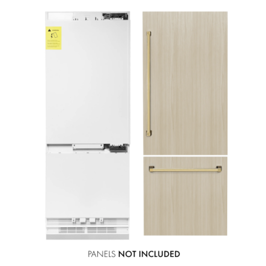ZLINE Autograph Edition 30 in. 16.1 cu. ft. Panel Ready Built-in Refrigerator: Features a sleek, customizable panel-ready design for seamless integration with your kitchen cabinetry.16.1 Cu. Ft. Capacity: Offers ample storage space, perfect for keeping fresh and frozen items organized.Bottom Freezer: The freezer compartment is conveniently located at the bottom, providing easy access to frozen goods.Internal Water and Ice Dispenser: Enjoy easy access to fresh, filtered water and ice without needing to open the fridge door.Polished Gold Handles: Elegant polished gold handles add a touch of luxury and sophistication to the refrigerator.Adjustable Shelving: Flexible shelving options allow you to customize the interior for a variety of storage needs.ENERGY STARĀ® Certified: Ensures energy efficiency, saving both energy and cost while maintaining optimal performance.Built-In Design: A built-in unit designed for a seamless and modern look in your kitchen.