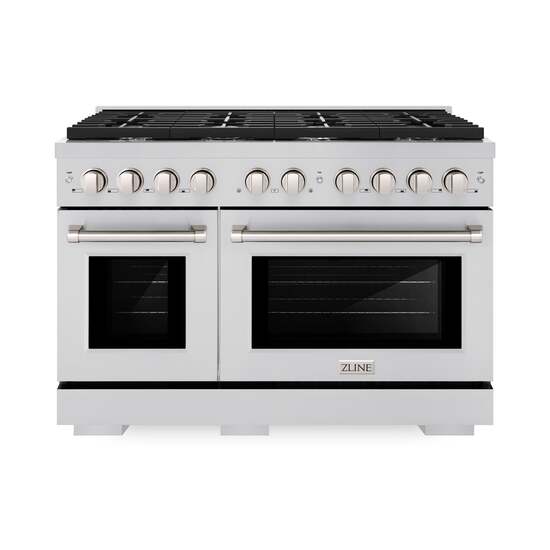 Luxury isnt meant to be desired - its meant to be attainable. The ZLINE 48 in. 6.7 cu. ft. Paramount Gas Range with 8 Burner Cooktop and Dual Ovens in Stainless Steel (SGR48) features a versatile gas cooktop with 8 Italian-made auto-reignition burners, a large high-performing gas convection oven, a small baking oven, enhanced cast iron grates, and Horizon oven door window designs allowing you to master every meal. With a modern, timeless style and refined functionality, ZLINE Paramount Gas Ranges are masterfully crafted to deliver an elevated culinary experience.