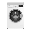 The 24 Inch Front Load Washer offers a 2.4 cu. ft. capacity, ideal for efficient laundry loads. It features 14 wash cycles, including a Steam option for deep cleaning and sanitization, along with a Quick Wash for fast cycles.