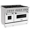 ZLINE 48'' 6.0 cu. ft. Dual Fuel Range with Gas Stove and Electric Oven in Stainless Steel and White Matte Door (RA-WM-48)