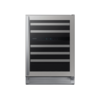 This 24-inch under-counter dual-zone wine cooler offers a 49-bottle capacity, providing ample space for your wine collection. It features roll-out shelves for easy access and organization, with interior display lighting that beautifully showcases your bottles.