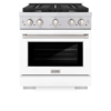 ZLINE Autograph Edition 30'' 4.0 cu. ft. Dual Fuel Range with Gas Stove and Electric Oven in Stainless Steel with White Matte Door and Gold Accents (RAZ-WM-30-G)