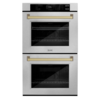 ZLINE Autograph Edition 30 in. Professional True Convection Double Wall Oven with Air Fry and Self Clean in DuraSnow Stainless Steel with Polished Gold Handles