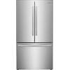 The 36 Inch French Door Refrigerator offers a spacious 26.8 cu. ft. total capacity with advanced features designed for convenience and efficiency. It includes dual icemakers and In-Door-Ice® storage for easy access to ice, along with an exterior ice and water dispenser for added convenience.
